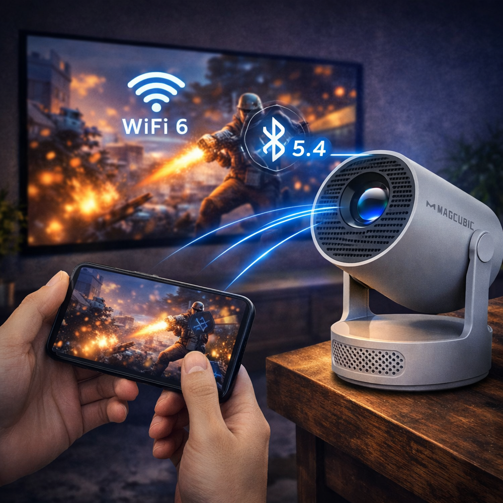 Projecteur Portable 8K Android 14 - 8000 Lumens WiFi 6 Bluetooth - Cinéma Maison HD